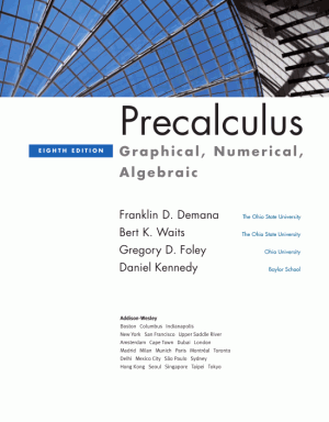 Precalculus Graphical Numerical Algebraic Eight Edition Franklin D Demana and Bert K Waits and Gregory D Foley and Daniel Kennedy Book